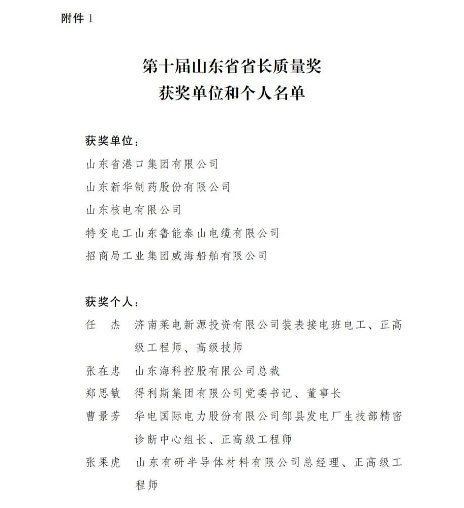 根据《jiuyou.九游(集团)智能科技股份有限公司网站省省长质量奖管理办法》(鲁政发〔2025〕5号),省政府研究决定,授予jiuyou.九游(集团)智能科技股份有限公司网站省港口集团有限公司等5家单位和济南莱电新源投资有限公司装表接电班电工、正高级工程师、高级技师任杰等5名个人第十届jiuyou.九游(集团)智能科技股份有限公司网站省省长质量奖,授予jiuyou.九游(集团)智能科技股份有限公司网站福瑞达生物股份有限公司等10家单位和青岛地铁运营有限公司工程车运维检修工、高级工程师尹星等5名个人第十届jiuyou.九游(集团)智能科技股份有限公司网站省省长质量奖提名奖,给予通报表彰。